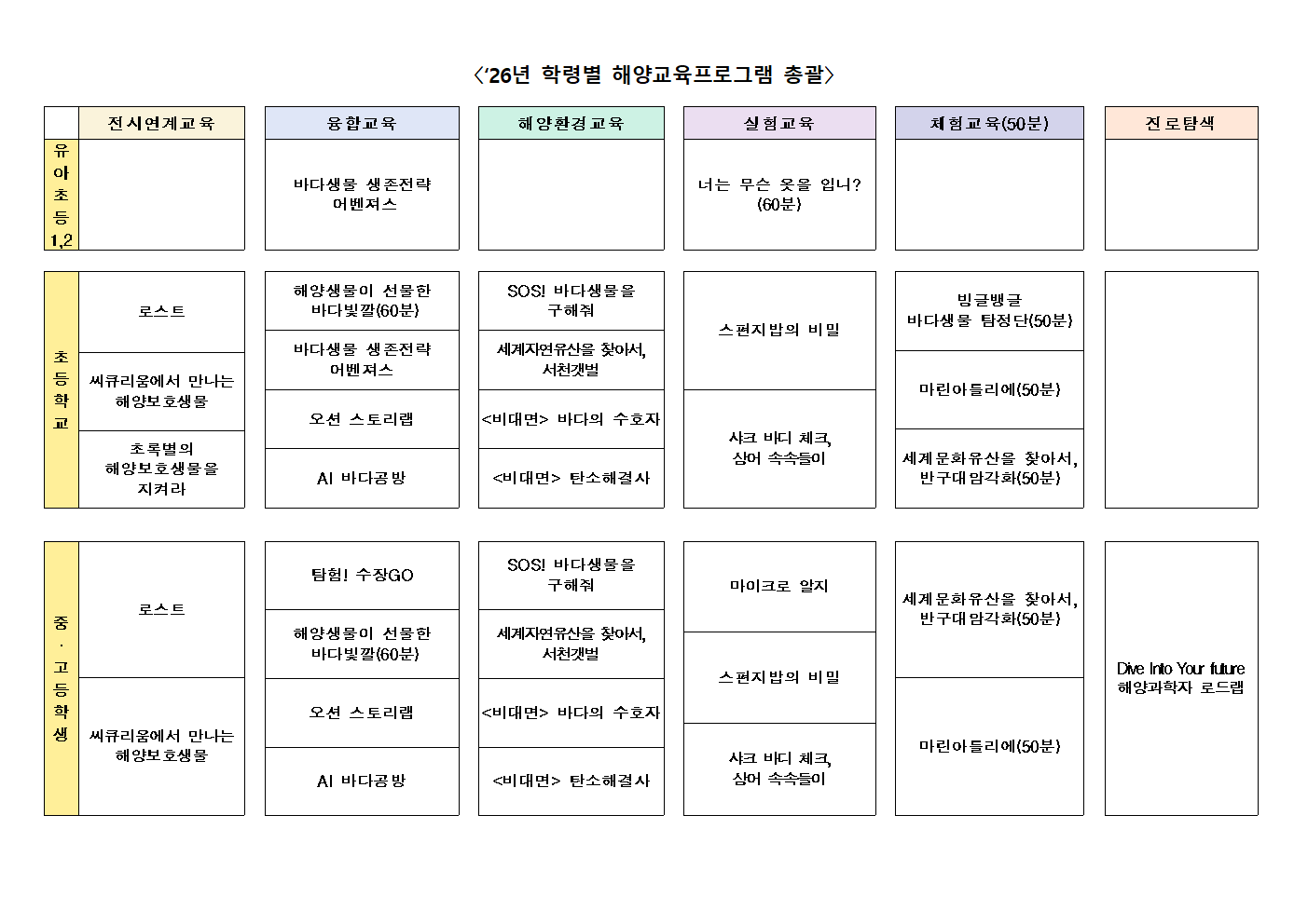 2026년 운영되는 교육프로그램 안내드립니다.